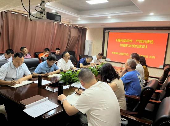 黨組書記劉羽以“強(qiáng)化組織性,嚴(yán)肅紀(jì)律性,加強(qiáng)機(jī)關(guān)黨的建設(shè)”為題講了一堂紀(jì)律專題黨課并就下半年工作進(jìn)行安排部署。